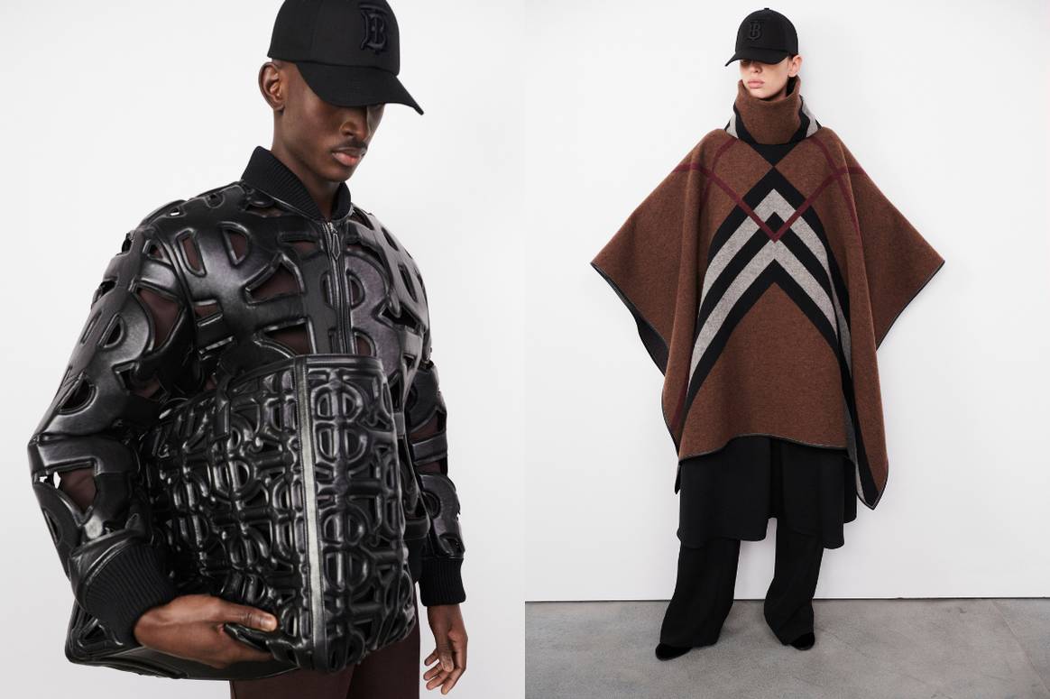 一方メンズ向けに関しては、ボタニカルスケッチプリントがアップリケされたキャメル色のテーラードコートに、ウールとカシミアのフード付きジャケットおよび幅広のパンツを組み合わせたルックスをはじめ、黒のレザーやトーマス・バーバリー モノグラムのカットアウトがアクセントのボンバージャケットも登場。