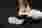 ルーク&ルーシー・メイヤー(Luke and Lucie Meier)夫妻による、白のアンクルブーツ。ソール部分が白黒のダブル・プラットフォームになっている。アッパー部分に、細長いストラップの装飾。アンクル・ストラップ付き。