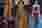 薄桃色のベストに合わせた。ホット・ピンクのシルク・スカート。アクセサリーには黒のフェイクファーのストール、ピンクのポインテッドトウ・ローファー、黒のハンドバッグを使っている。