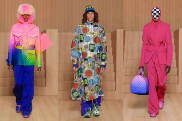 新作では「ルイ・ヴィトン」のシグネチャーの一つであるダミエ・パターンやヴァージルの「カルチュアル・タペストリー」に敬意を表し、多彩なチェッカー模様が登場。コレクション全体において、さまざまな生地の上に立体的あるいはトロンプ・ルイユ(だまし絵)の手法を用いて再現されている。