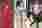 「ヴェルサーチェ(VERSACE)」は、ピンク・赤・黒の幾何学模様を配したバケット・ハットを、同じ柄の服と合わせてコーディネート。