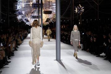 昨年11月、「ルイ・ヴィトン」との契約を5年更新したジェスキエール=ウィメンズ・アーティスティッィクディレクター。通算10年連続でブランドのデザイントップ就任は、昨今のファッション界では異例である。そんなジェスキエール氏の最新作を見に集まった4000人の観客を、同氏はノスタルジックな雰囲気を表現したコレクションと、アーティスト フィリップ・パレーノ手がける未来の宇宙船を思わせる演出で魅了した。デザインは、SF好きの彼のテイストや、「バレンシアガ(BALENCIAGA)」時代の面影を映しつつ、高級ブランドとして名を馳せるきっかけとなったモノグラムのトランクにインスパイアされたシルクのプリントドレスなど、メゾンへのオマージュを込めたアイテムも披露された。