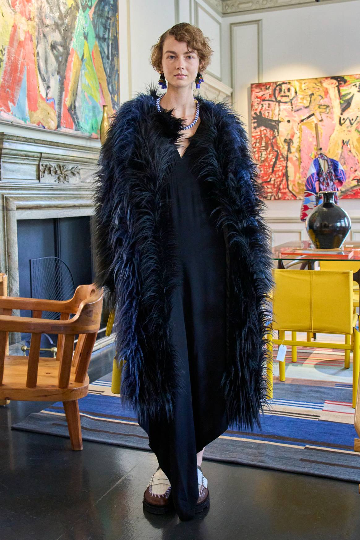 驚くべきことに、トレンド予測家のフェイス・ポップコーン氏はおよそ40年前すでに「コクーニング」という造語を提唱していた。家の中で社会から離れた癒しの空間を求める消費者の欲望を表した言葉で、昨今は寒さなどから身体を包んで守るアウターやセーターなどのアイテムを示し、ファッション業界で幅広く浸透している。一方、色やプリントが控えめな今シーズンのコレクションでは、多くのデザイナーが生地感にこだわり、フェイクファーやフェザーなどふさふさとした素材を使ったコクーンのような造形のスタイルが散見された。