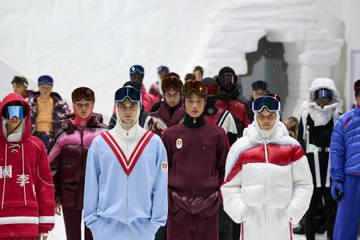 このテーマはコレクション全体に貫かれており、オリンピックの五輪マーク、中国代表チーム、そしてスノーボードやアイスホッケーといった様々なスポーツが中心となっている。