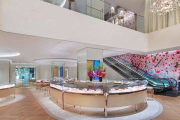 2階では、有名なティファニーのセッティングラインを含む、アムールとフィアンサイユのコレクションをご覧いただけます。最後に、プライベートサロンはラグジュアリーなラウンジとして改装された。